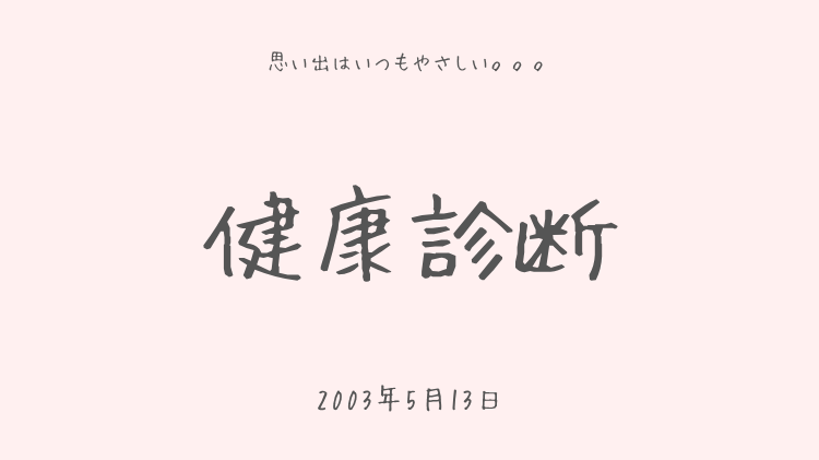 2003.05.13 ひとり言 健康診断 修子 年に一度の健康診断に行ってきました。私は採血もバリウムも平気。 今年は時間の都合でバリウムは飲まなかったけど、採血なんて ジ~ (・_・|っと見ちゃってたぶん看護婦さんやりにくいだろうなぁ(笑)そんな中、びっくりしました! 身長が1.5cmも伸びてる・・・。 まだ私は成長期か!?ただでさえ身長高くてイヤなのにさ! 寝る子は育つとはこの事だね(笑) スポンサーリンク コメントをキャンセルメールアドレスが公開されることはありません。 ※ が付いている欄は必須項目です 上に表示された文字を入力してください。 ABOUT ME 修子XInstagramYouTubeContact酒・食、時々、旅・舞台・着物𝓮𝓽𝓬. レジャックの外が見えるエレベーターが子供の頃の遊び場だった管理人が名古屋を中心に綴る日記ブログ。 最近は夫や友人と旅やホテルステイも楽しみつつ、完全同居型二世帯住宅に住む子なし夫婦です。