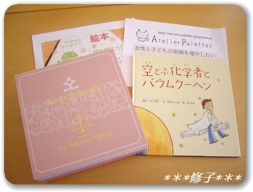 このバームクーヘン、ただのバームクーヘンじゃなくって、「ラ・バランス銀座(La Balance Ginza ) 」のバウムクーヘンの商品開発秘話を絵本にしたものが、一緒に頂いた絵本「空とぶ科学者とバウムクーヘン」なんですって~☆