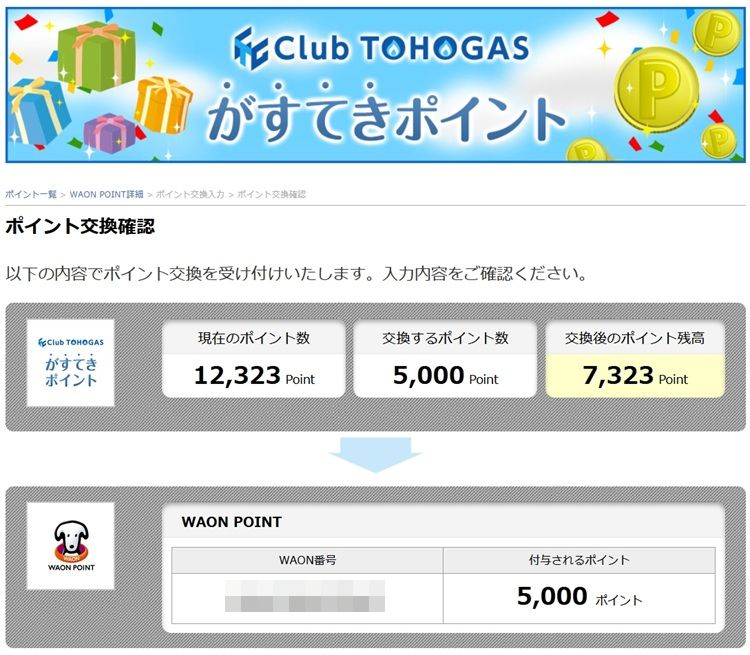 さて、東邦ガスのがすてきポイントもWAONPOINTへの交換が開始されていましたー!