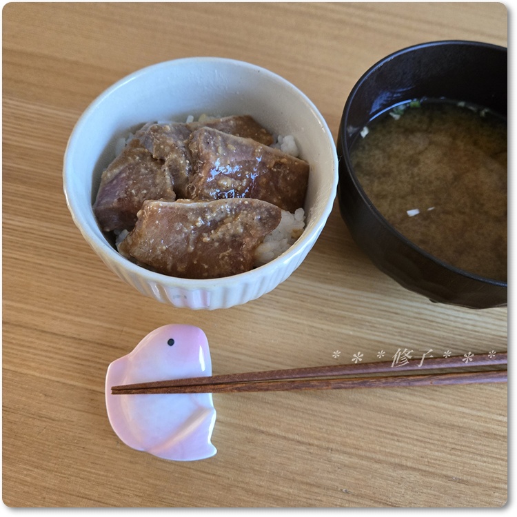 昨年に引き続き、今年のお昼も昨日の残りの鰤のお刺身をヅケにしておいたので、ヅケ丼で☆