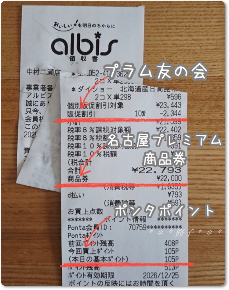 名古屋プレミアム商品券、イオン系だと割引との併用ができずだけどアルビスは併用可♪