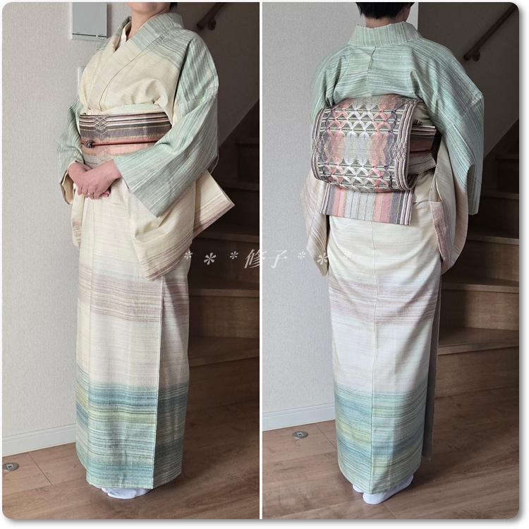 とは言え、せっかくなので、ますいわ屋さんで購入した着物がいいかなぁ。。。としけ引き染めの伊奈紬にひなやの組帯にしてみました♪