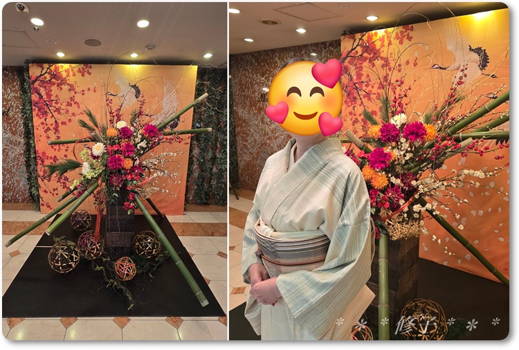 ホテルの入口は新年らしい装飾になっていたのですが、そこで呉服屋さんのカメラマン(従業員?)が写真を撮ってくれていまして。