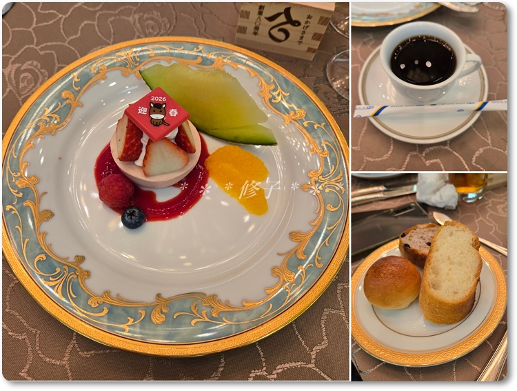 1月のはじめと言うこともあって、デザートの上に「迎春」のチョコが☆