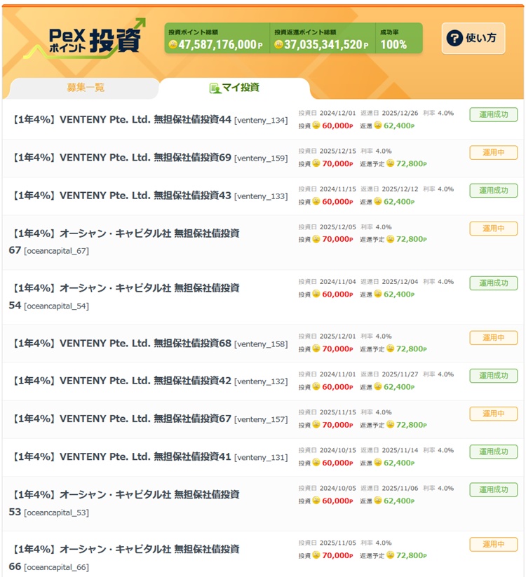 昨年末の宣言通り、今年は60000Pから70000Pに増やして、月3回×12か月の投資。