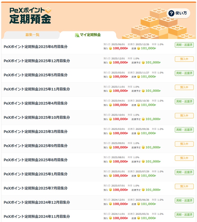 こちらは利率1.5%と、Pexよりいいので、続けたい☆