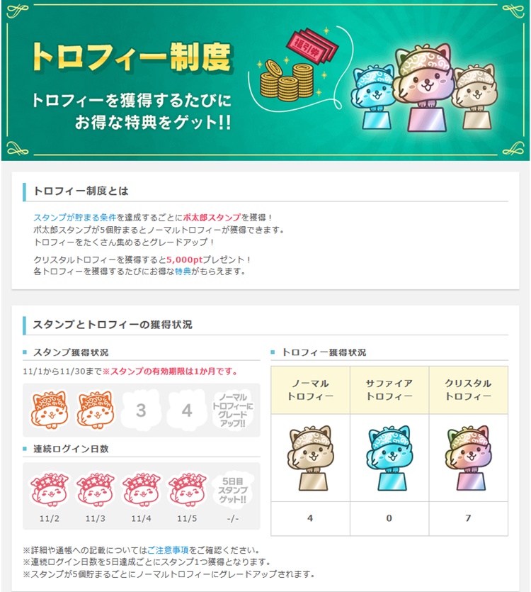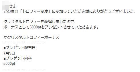 トロフィーの報酬だけでざっくりと1年間で11000Pぐらいは貰えるのではないかと皮算用、、、