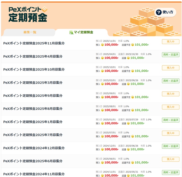 PeXと同様に、ポイント定期があって複利の力でポイントを増やしてます♡