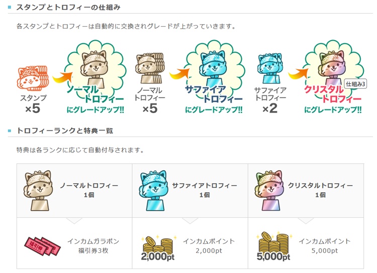 ノーマル→サファイア→クリスタルとランクアップするごとに報酬がもらえるのです♪